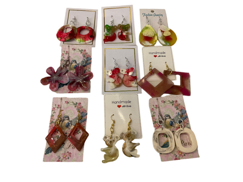 I hand make beaded and resin jewelry including earrings, necklaces and