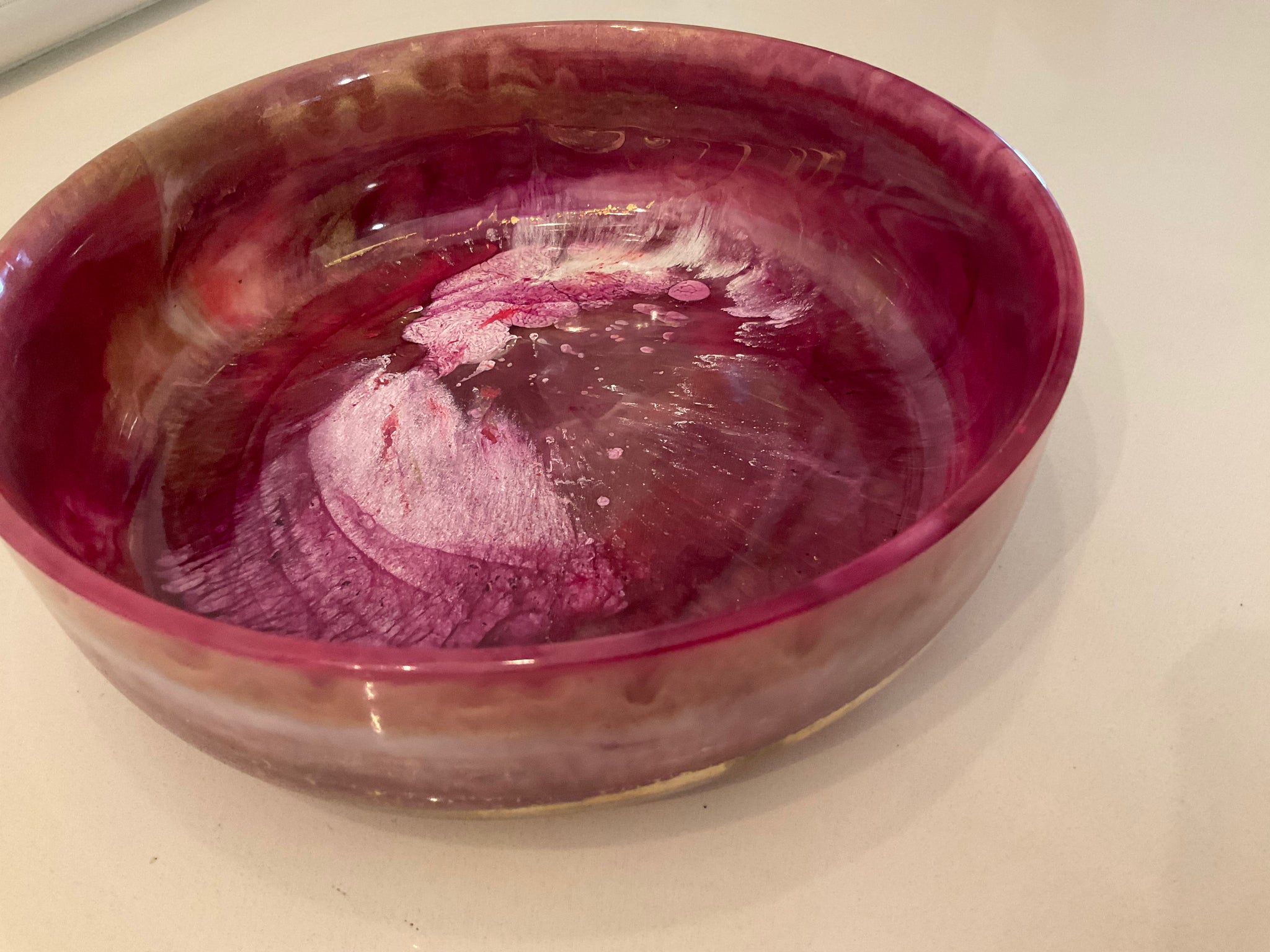 Resin salad or large circular bowl in gorgeous pinks, white & a touch of gold.