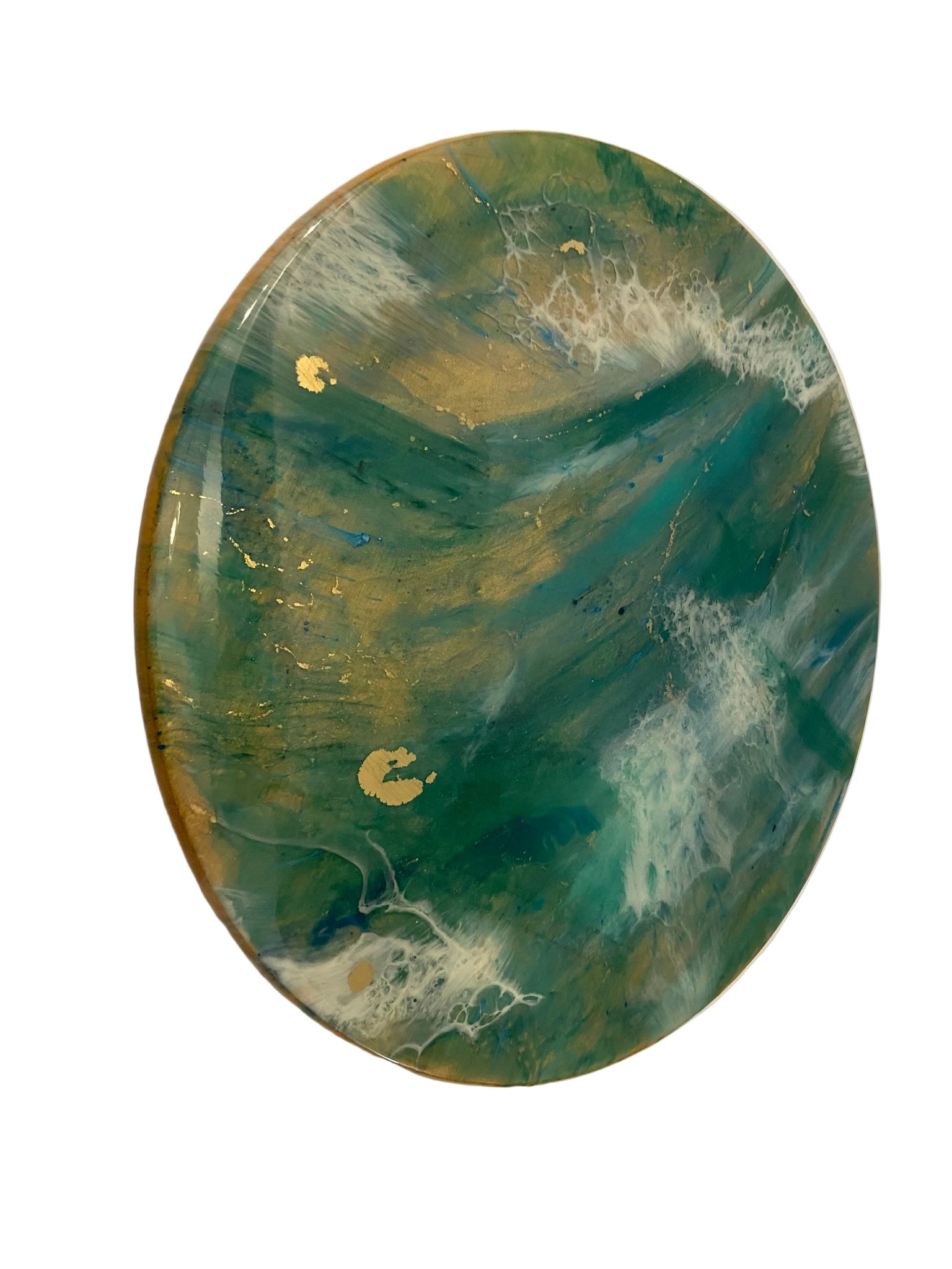 Bamboo base lazy Susan with a resin top in stunning colours of Greens, Gold & a dash of White