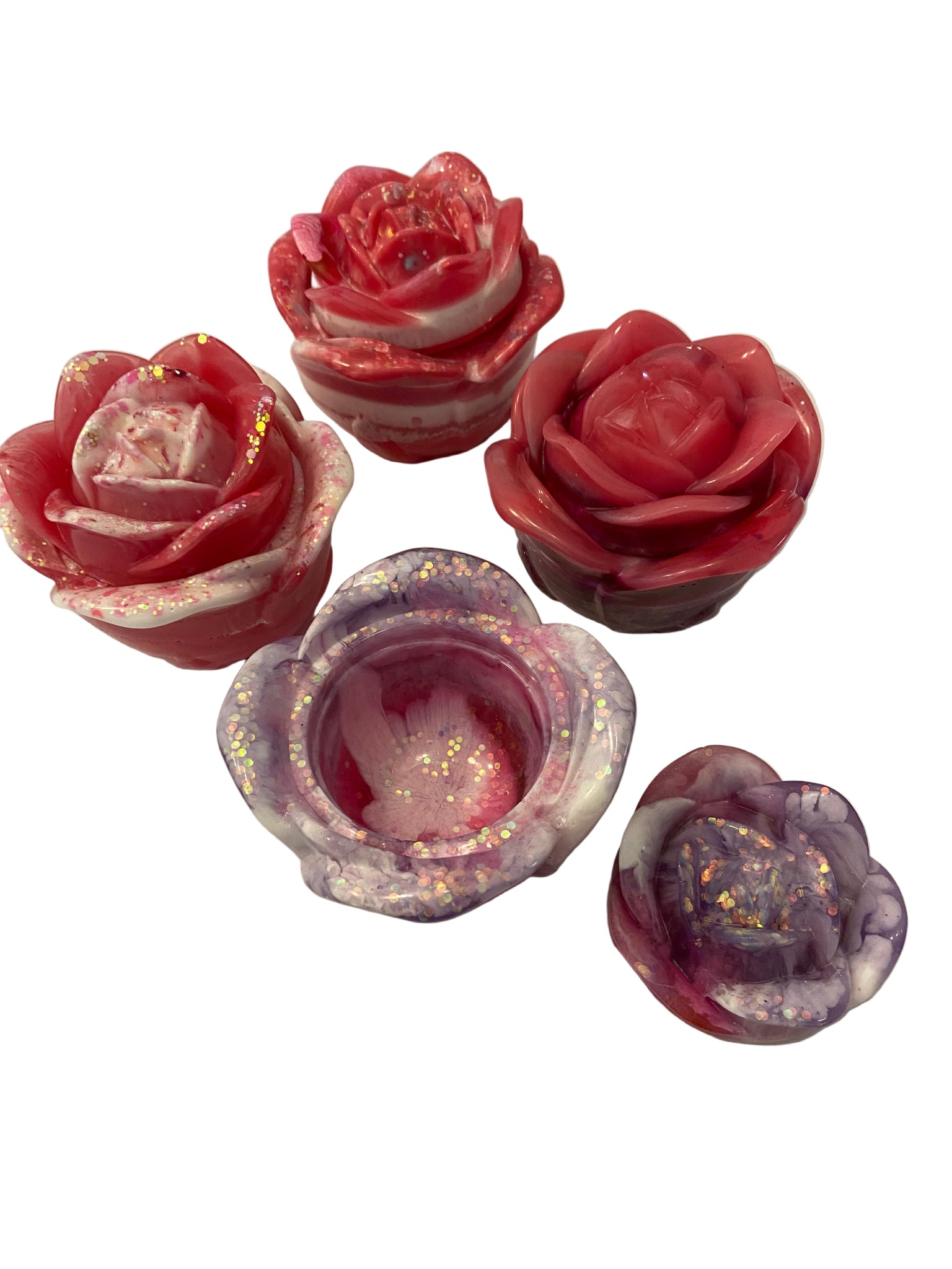 Resin rose shaped containers available in a variety of gorgeous colours.