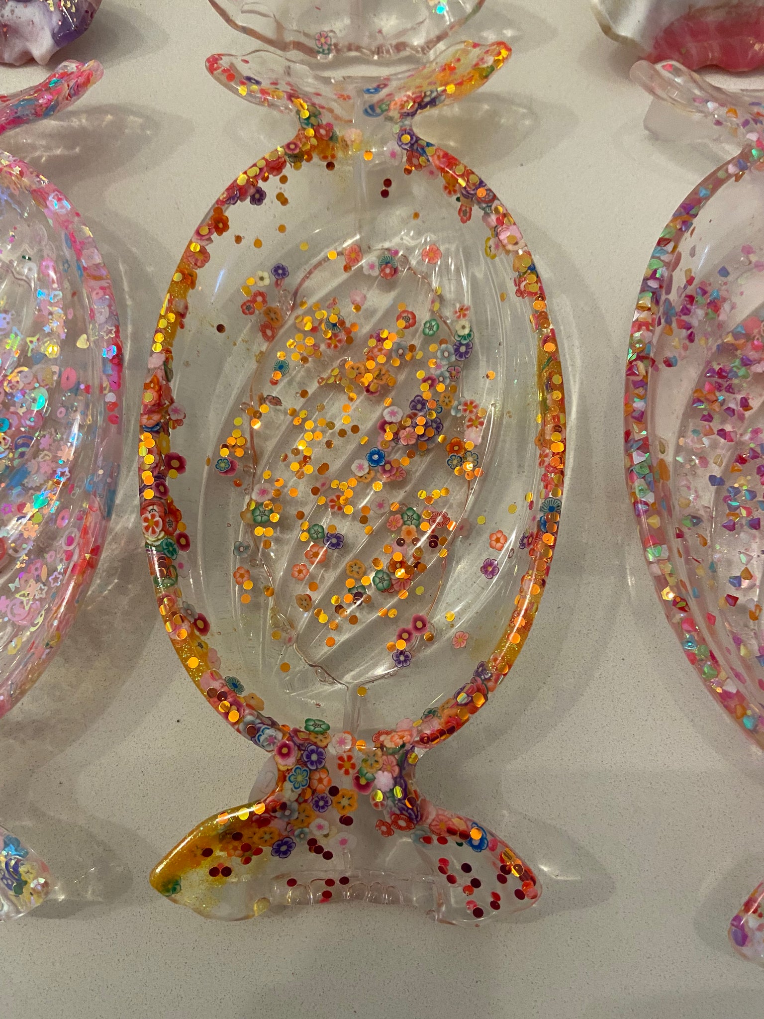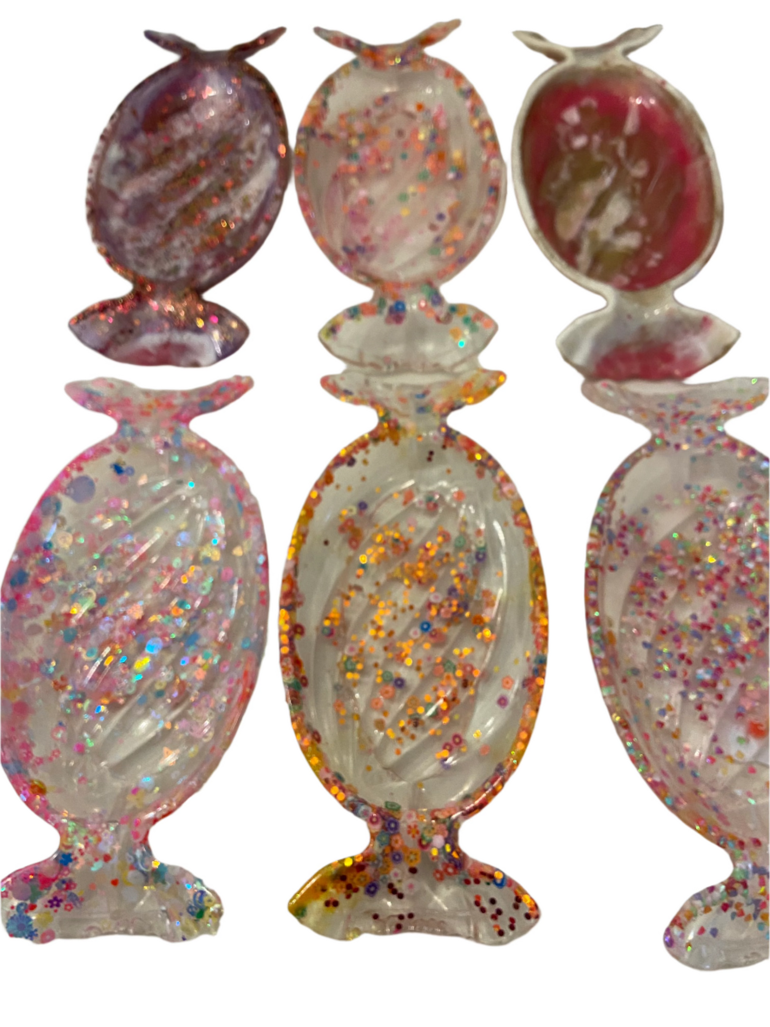 Resin Lolly shaped dishes available in a variety of gorgeous colours, including pinks, with sparkles & confetti.