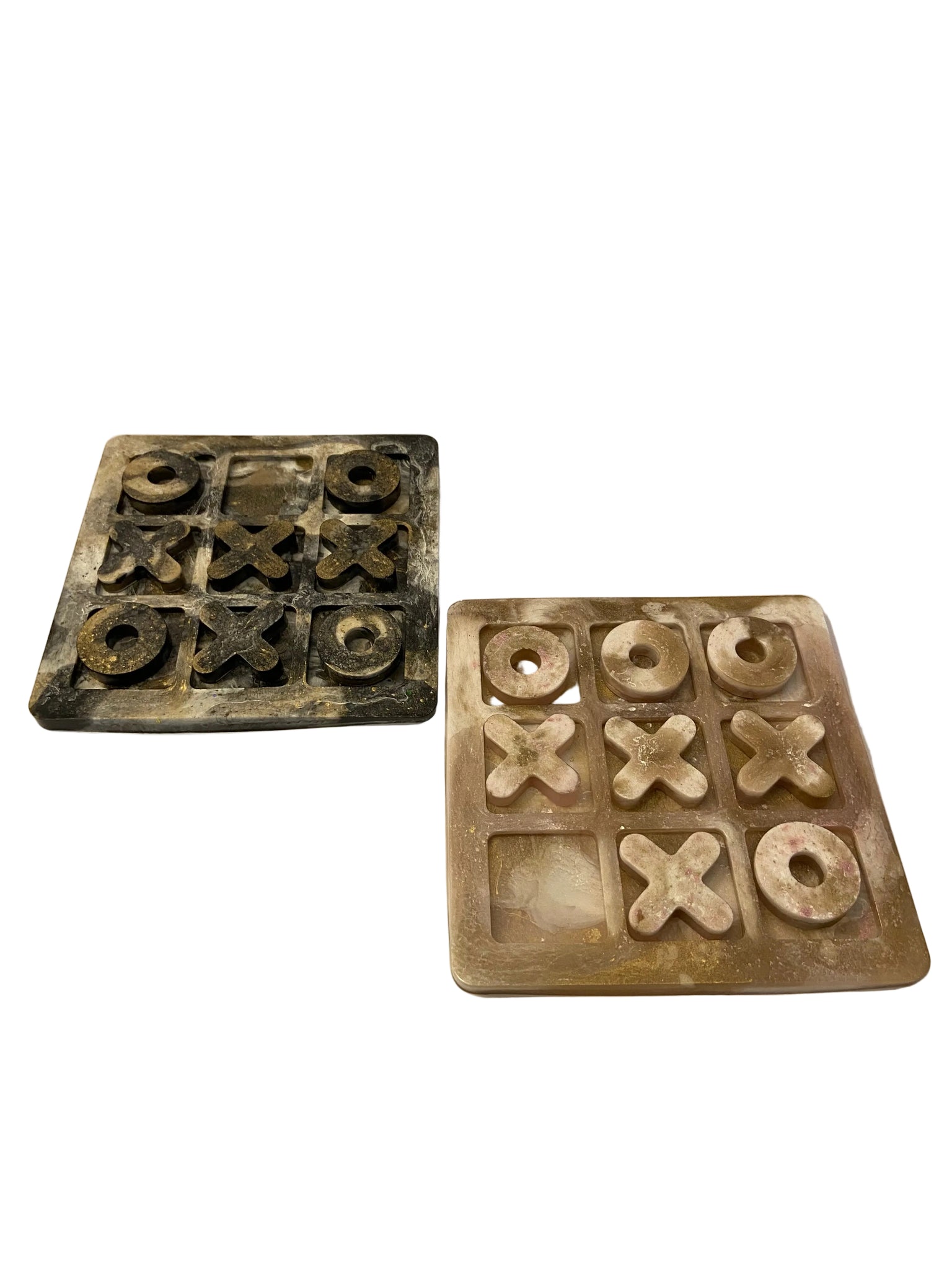 Resin naughts & crosses game comes with "board" and 4 crosses & 4 naughts, available in a variety of colours.