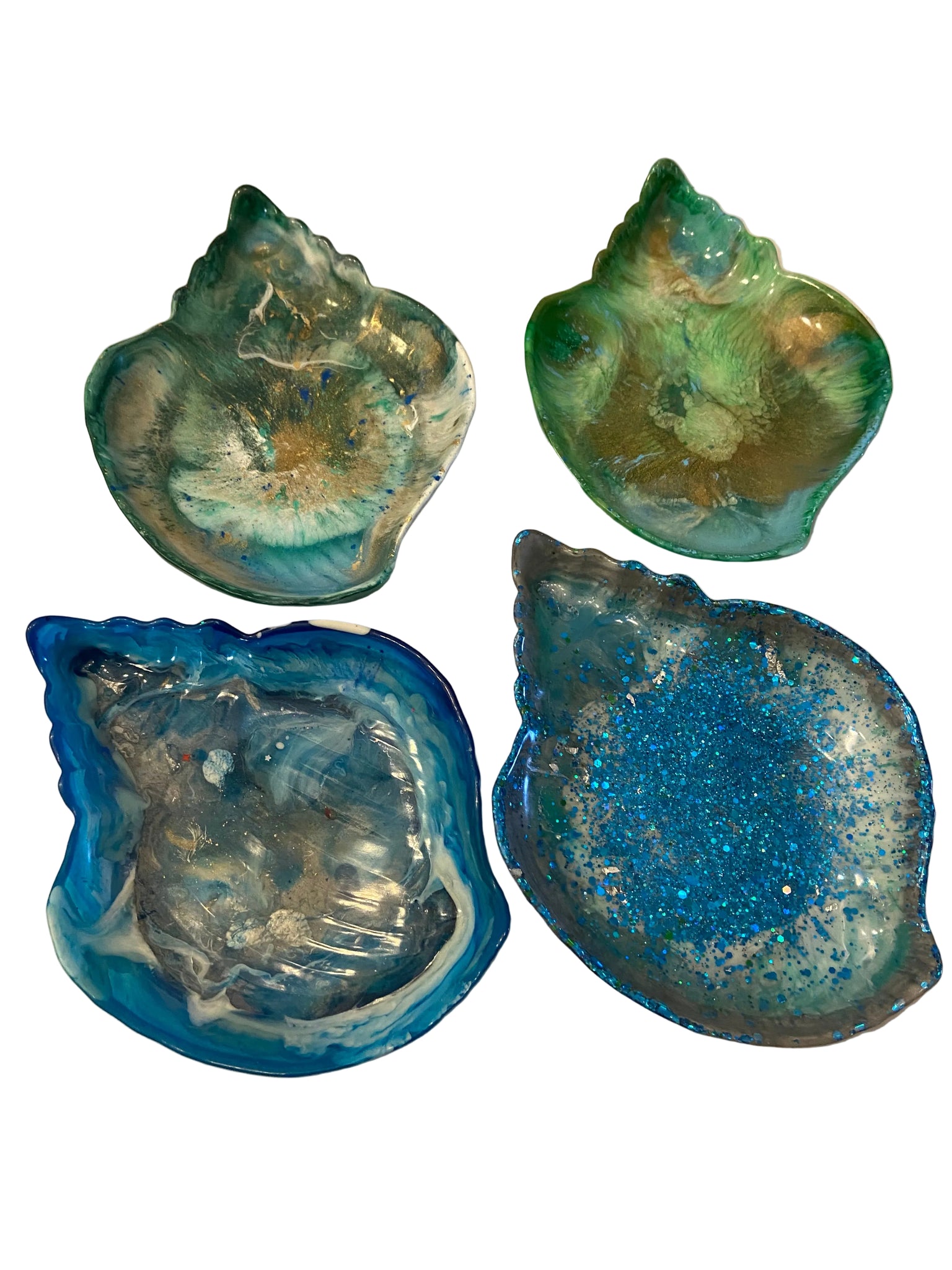Resin Shell dish available in a variety of gorgeous colours, this one in blues, greens, gold & white.