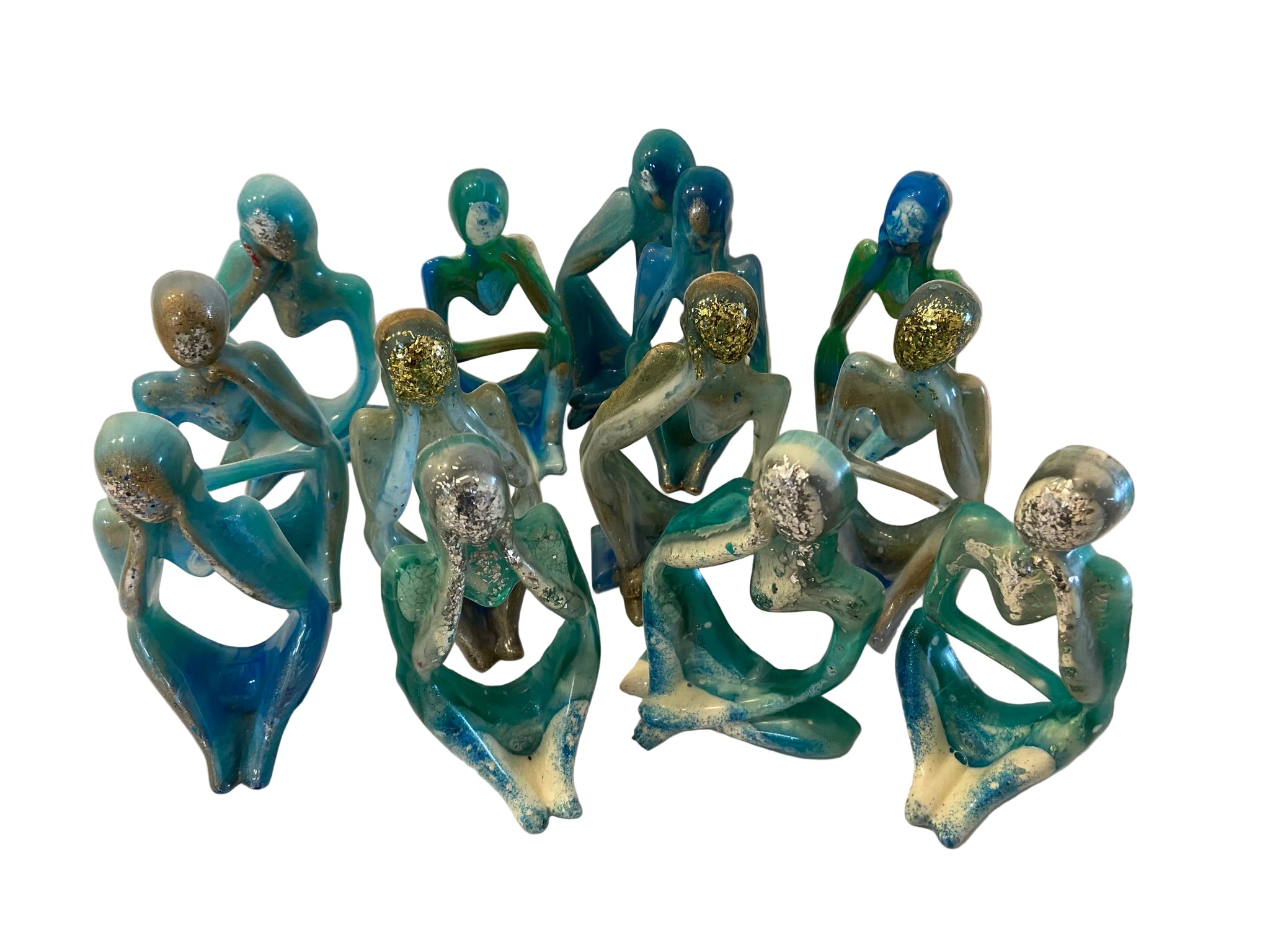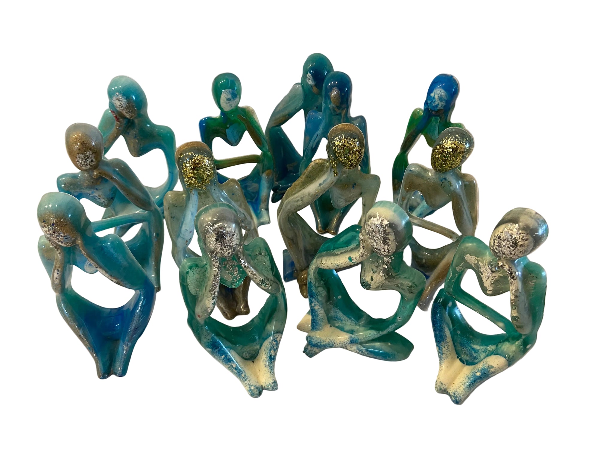 Resin Thinker figures sold as a set of 3 ($40) or can be purchased individually at $15@ & available a variety of colours.
